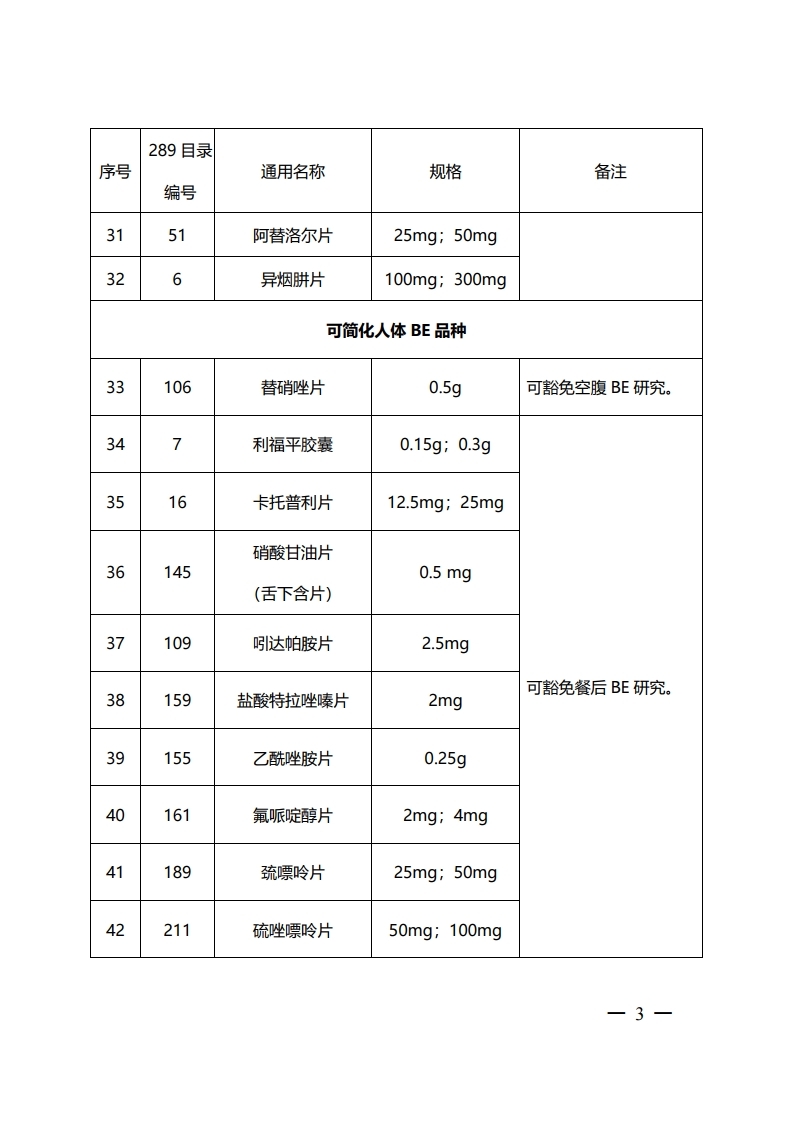 可豁免或简化人体生物等效性(BE)试验品种